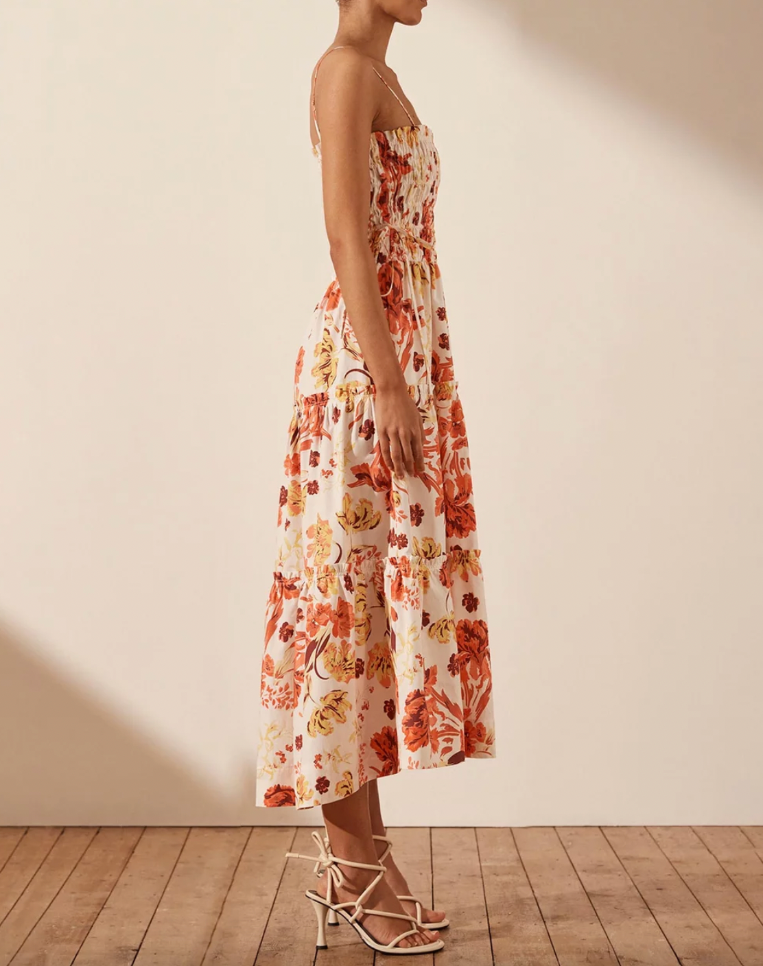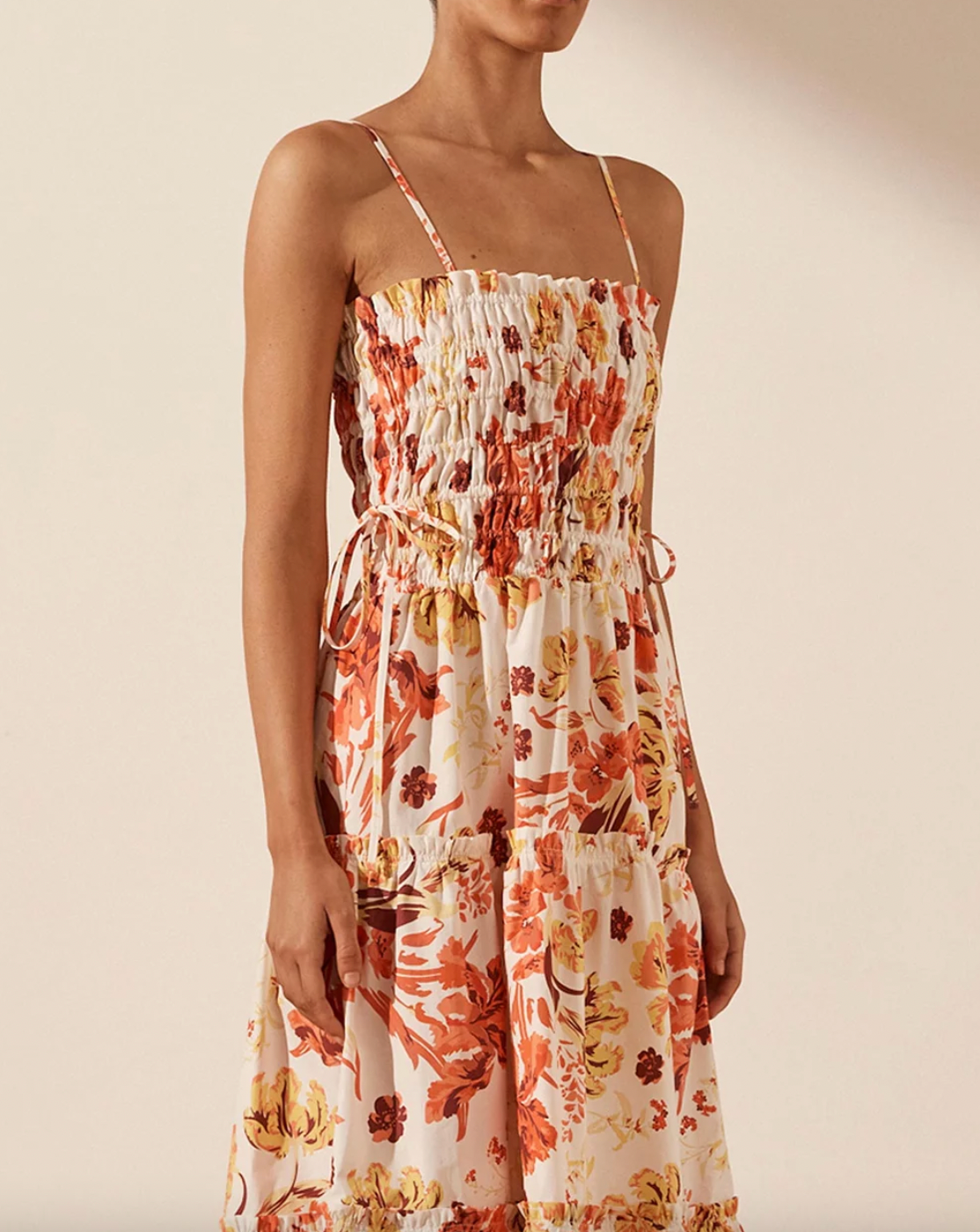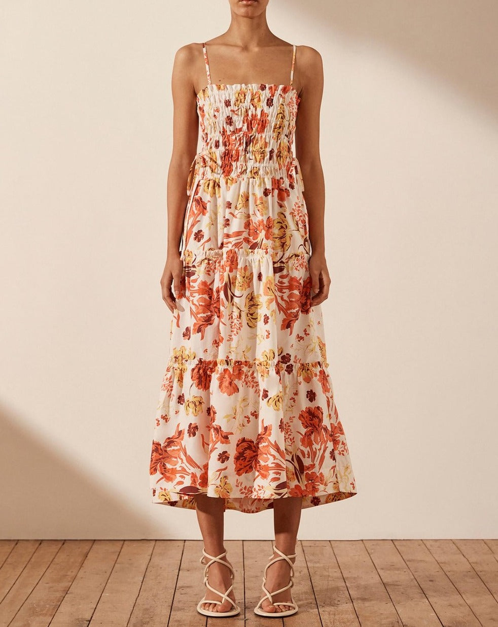 Kalani Shirred Tiered Midi Dress