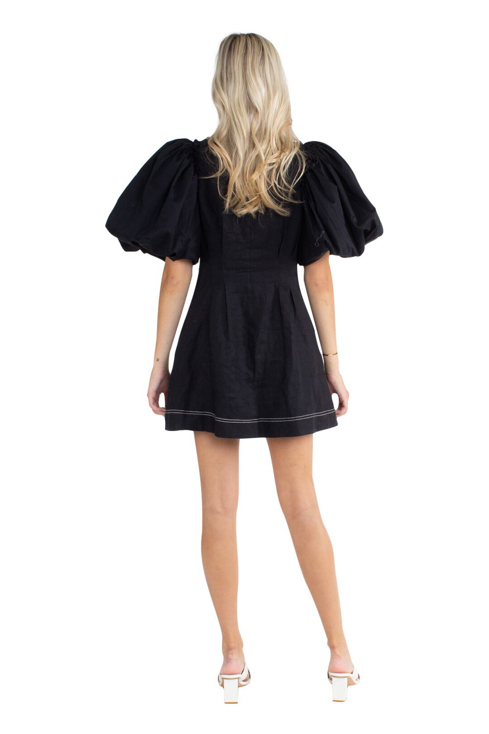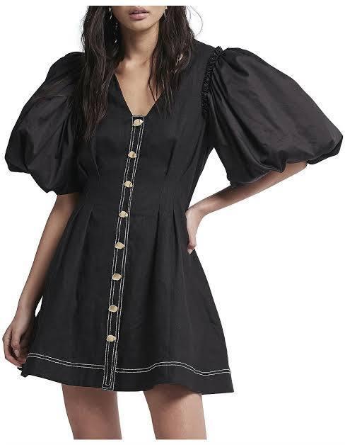 A fitted mini dress with a classic Aje voluminous sleeve means a wardrobe statement maker you will love forever. Fall in love with the details, with a linen body, organza sleeve and functional button-down front plus a cinched waist.